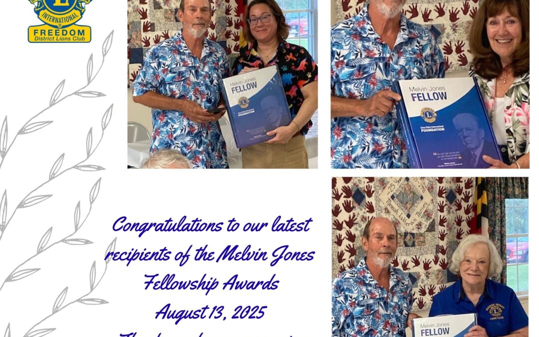 On August 13, three Freedom District Lions received the honor of being Melvin Jones fellows. The Melvin Jones Fellowship is the highest form of recognition awarded by Lions Clubs International Foundation (LCIF). It is named after Melvin Jones, the founder of Lions...